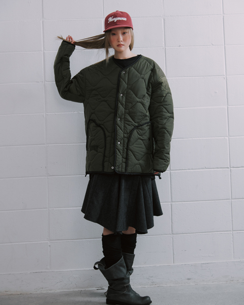 - 단독 또는 동일 라인의 퀼팅 자켓과 레이어드하여 볼륨있게는 스타일링을 연출, 활용도를 높인 시리즈 구성