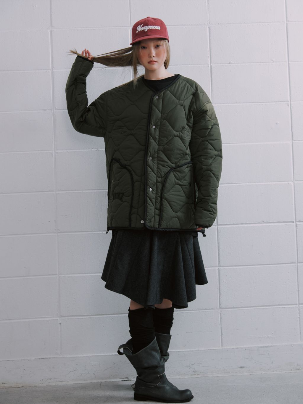 - 각을 잡은 앞 부분을 제외하고 전체적으로 각을 없앤 자연스러운 형태의 크라운으로, 푹 눌러쓰거나 툭 얹은 후 앞 부분의 각을 살짝 눌러 여유있는 핏 감을 살리는 등, 취향에 따라 다양한 포인트로 활용하기 좋은 볼 캡