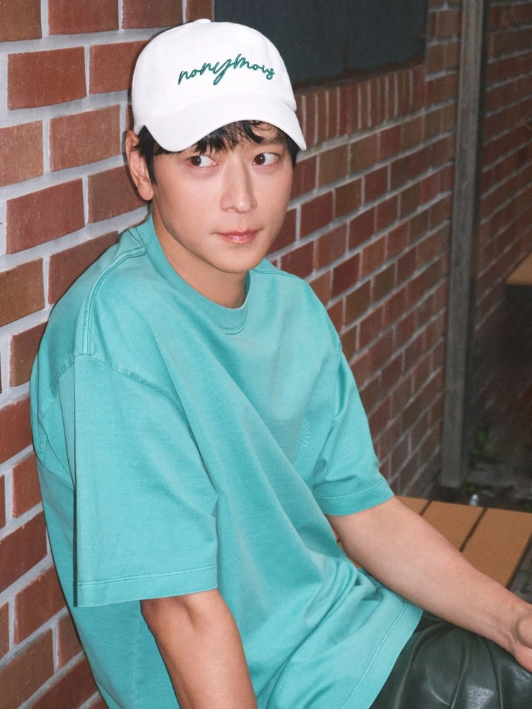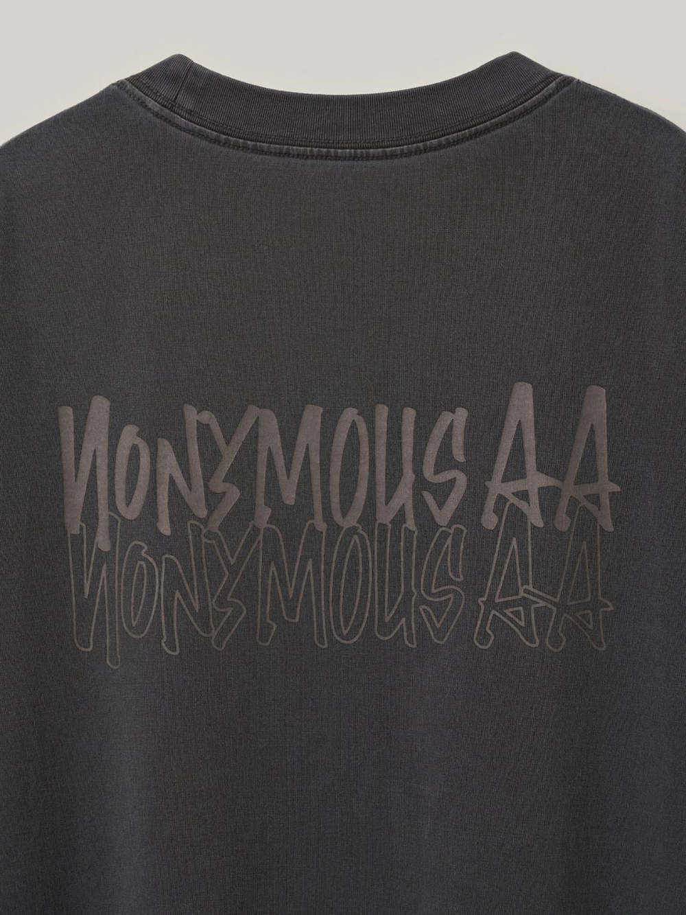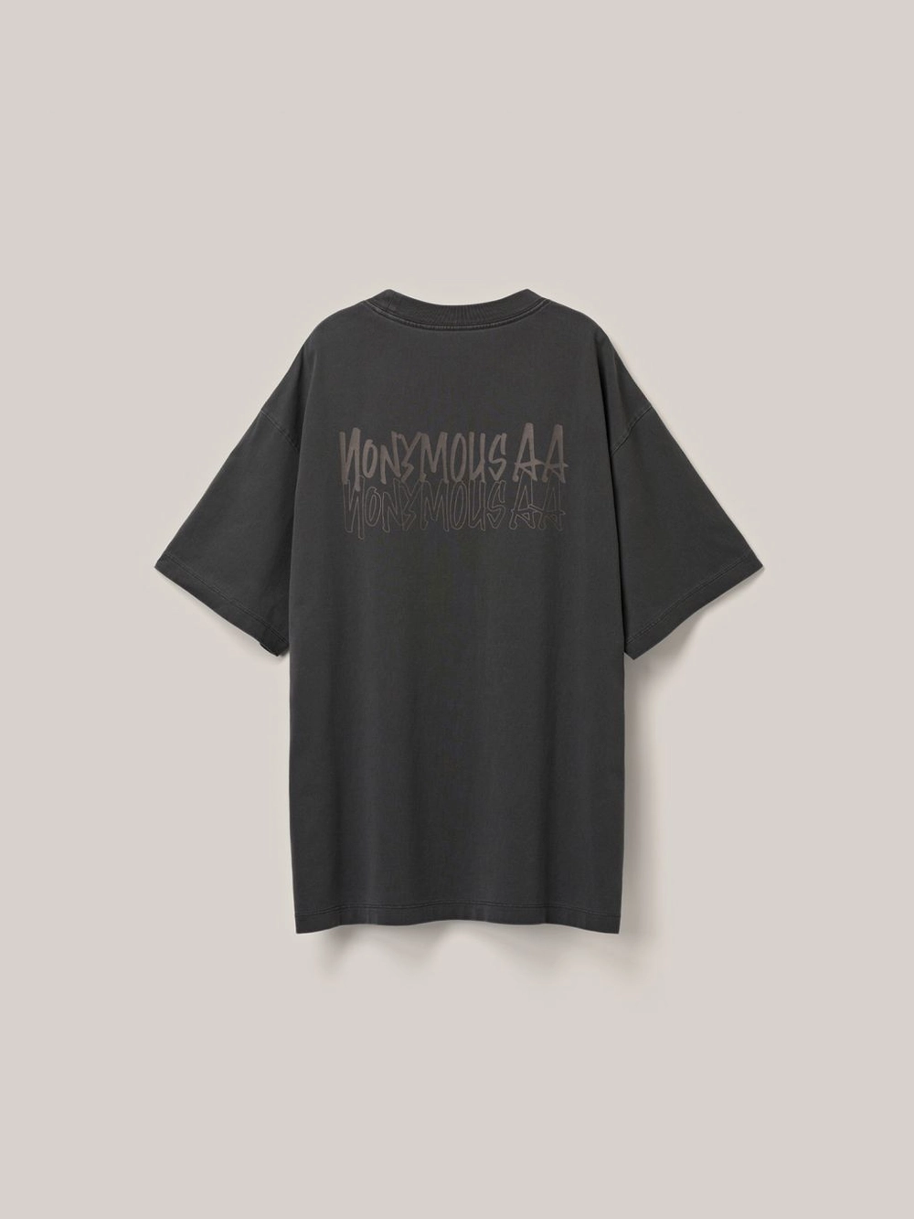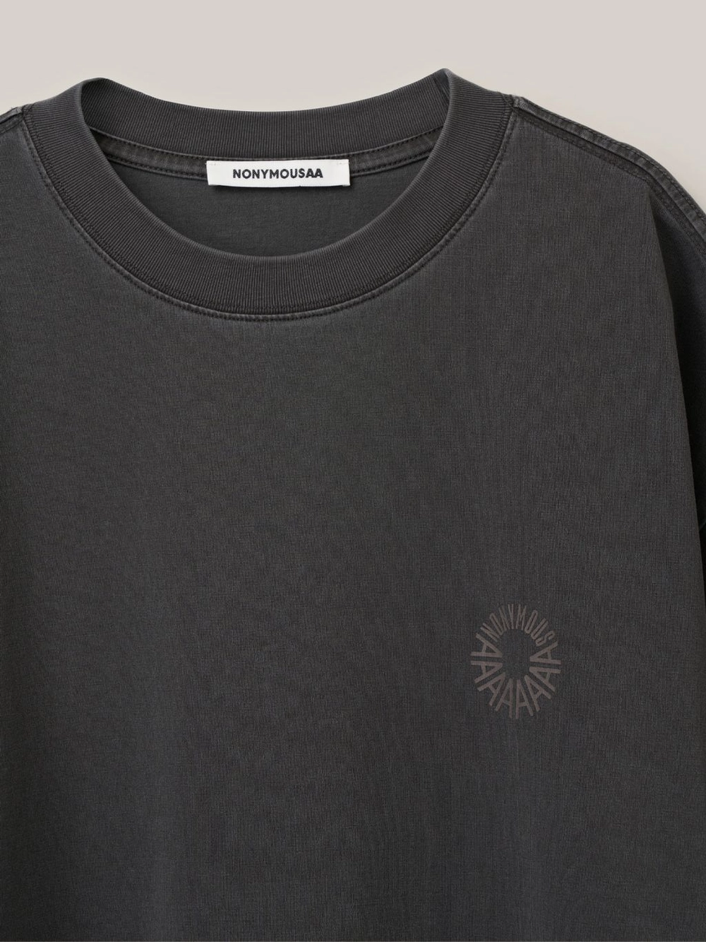 가슴 상단의 'NONYMOUSAA' 원형 로고 프린트