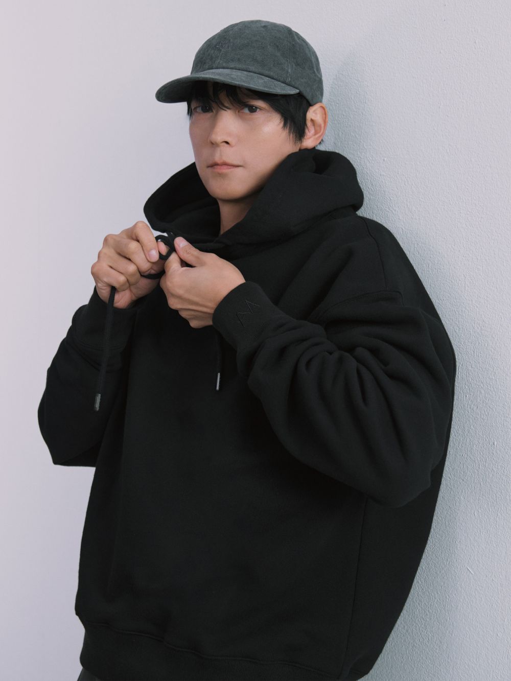 - 앞 중심에 위치한 브랜드 레터링 자수가 포인트가 되어 스타일을 완성